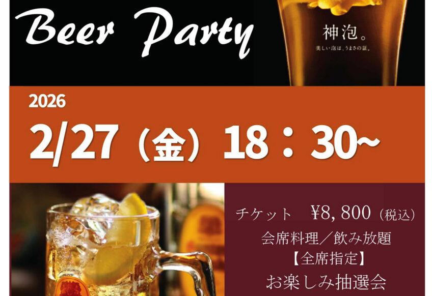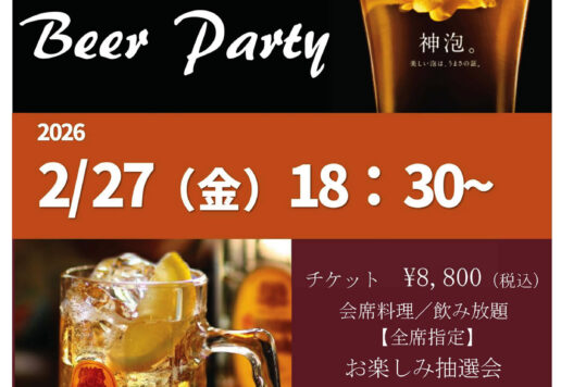 山村別館のホームページをご覧いただきましてありがとうございます。 2月27日(金)18時30分より、恒例の 山村別館 with SUNTORY Beer Partyを開催いたします。 毎回人気の企画です。 130名様限...